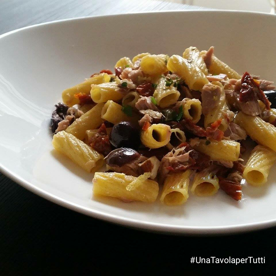 Basta una scatoletta di tonno e un po’ di fantasia … io ho utilizzato i pomodori secchi ma potranno essere sostituiti con del pomodoro datterino o essere omessi, potrete utilizzare tonno al naturale o all’olio di oliva e in estate questo piatto si trasformerà in un buona pasta fredda.