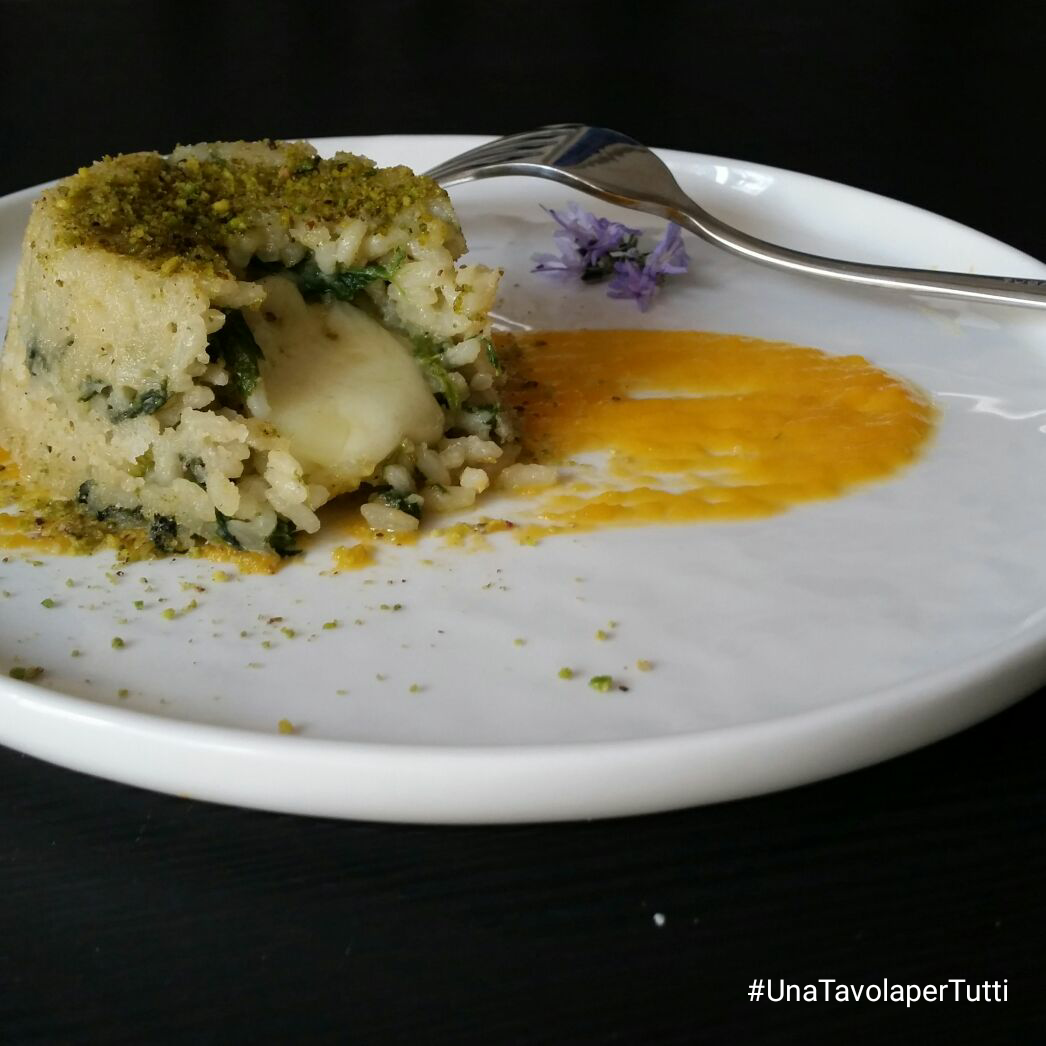 Sformatino di riso con spinaci su crema di zucca