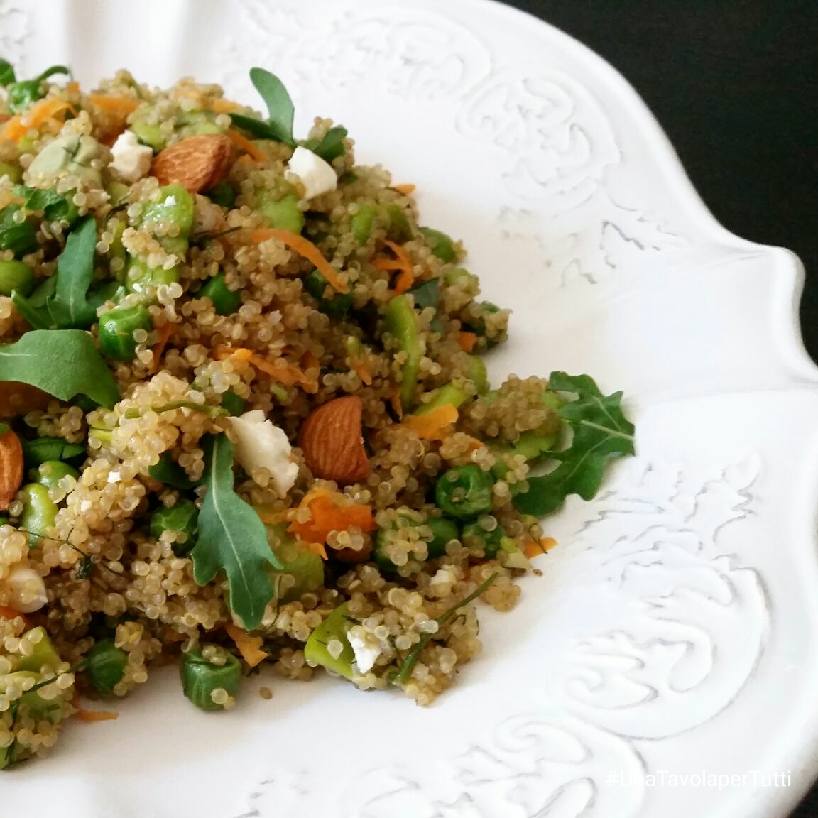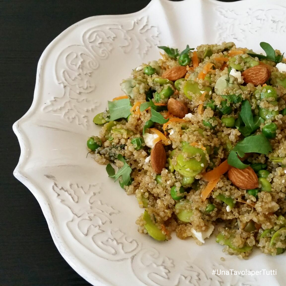 Quinoa con fave, piselli e mandorle