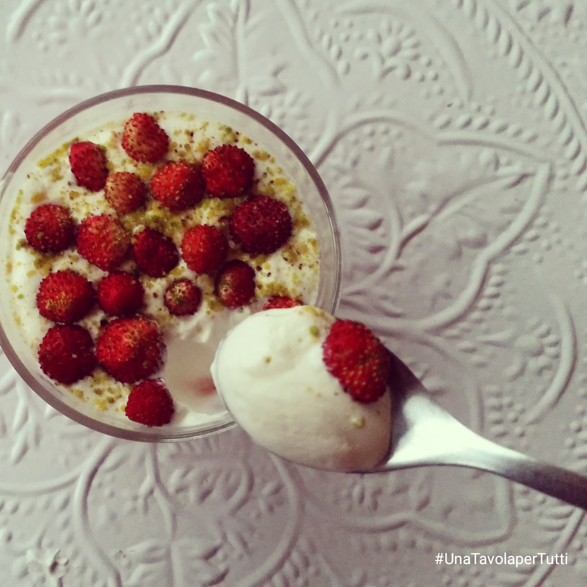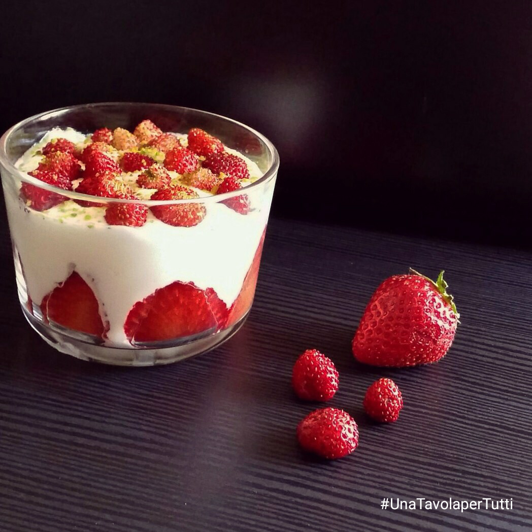 Per dolce avevo pensato a un buon gelato allo yogurt, postato tempo fa, con le prime fragole di stagione ma erroneamente ho montato la panna … e così ho trasformato il gelato in una mousse golosissima.