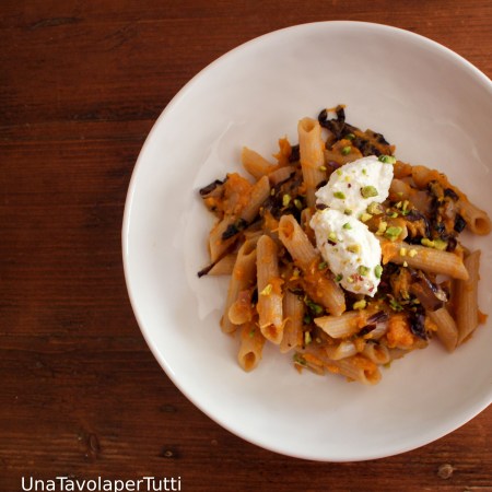 Penne integrali con zucca, radicchio e ricotta